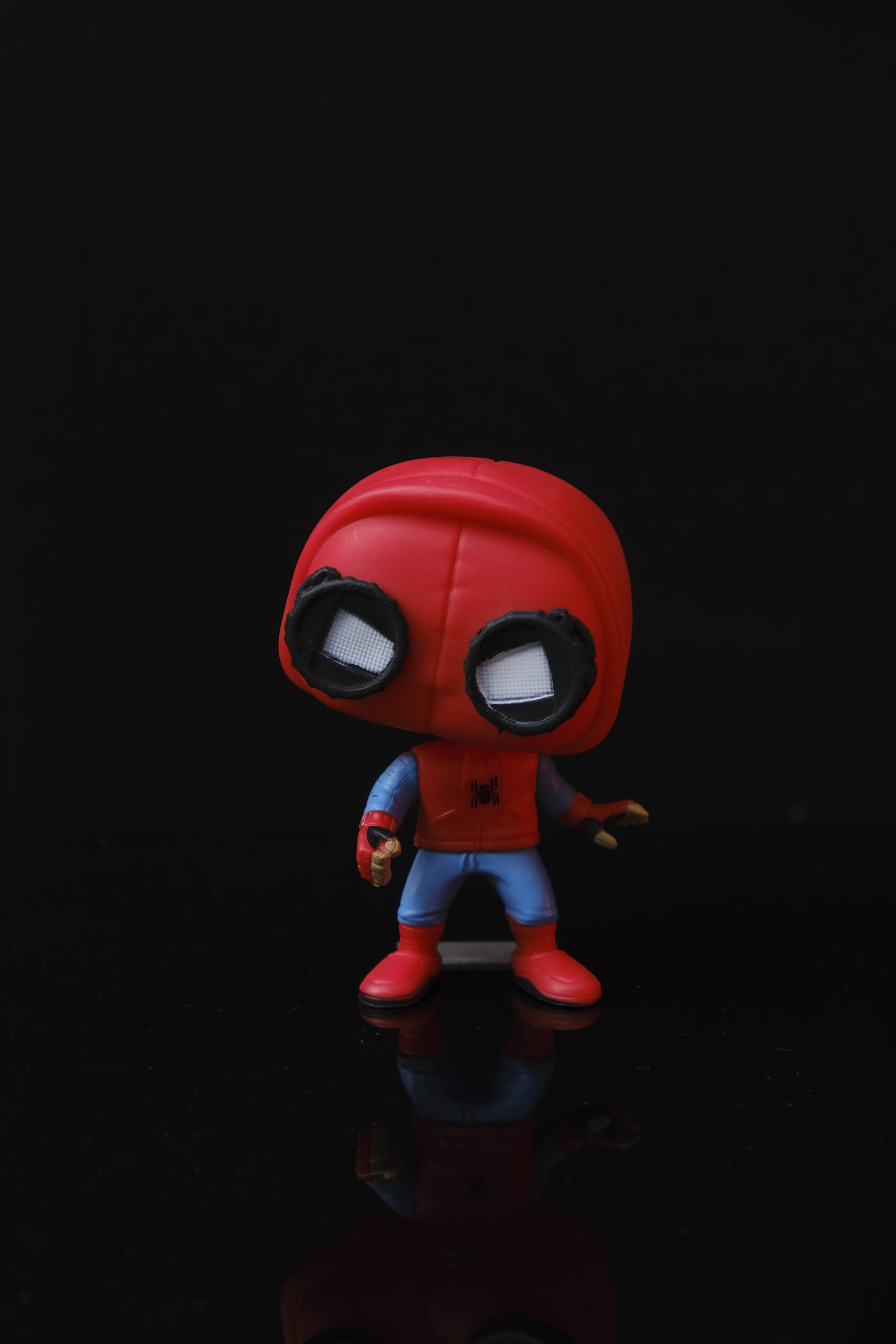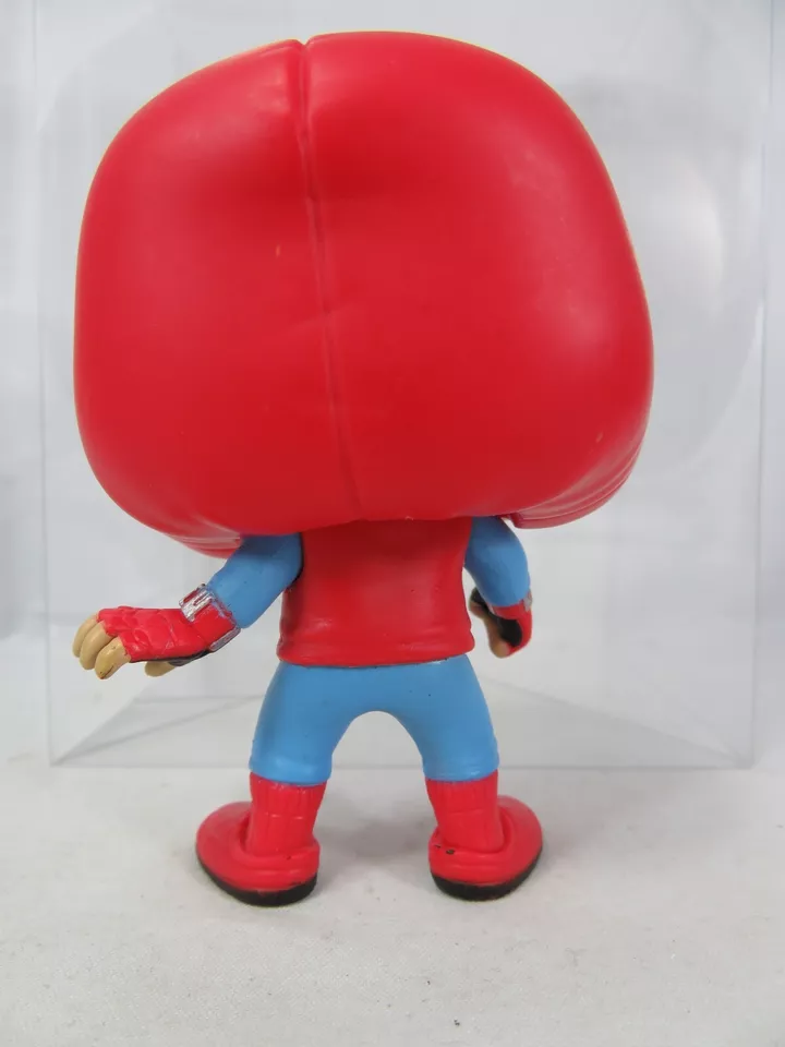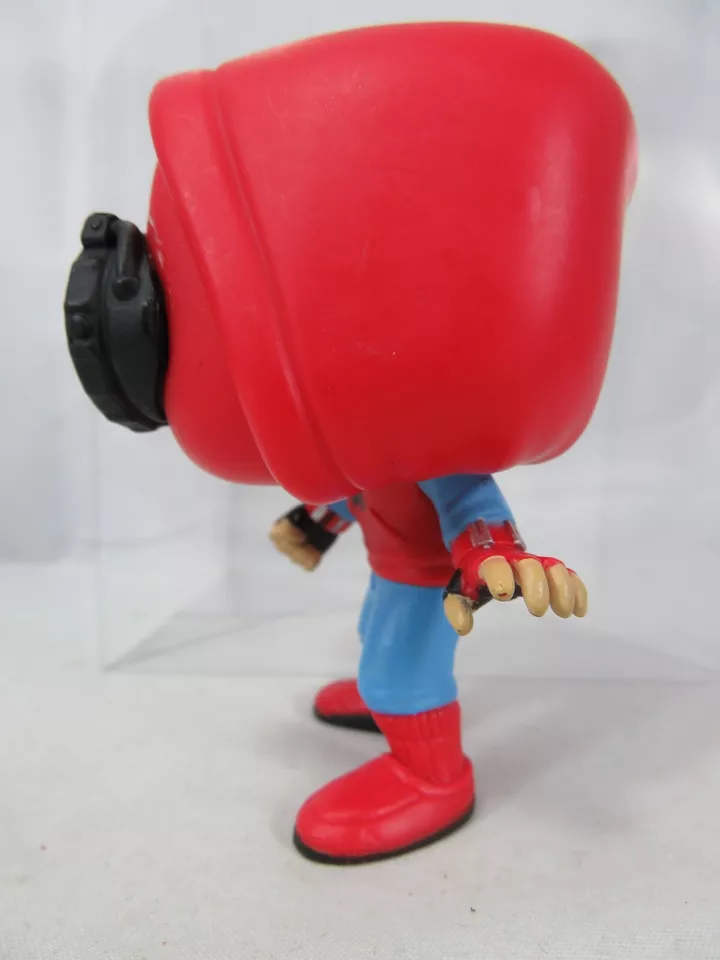 This is a Spider-Man Funko Pop specifically representing the version of Spider-Man in his homemade suit from the Marvel Cinematic Universe (Spider-Man: Homecoming). This design captures Peter Parker’s early days as Spider-Man, emphasizing his resourcefulness and creativity before gaining access to the high-tech suit provided by Tony Stark.
