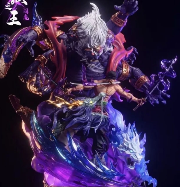 Roronoa Zoro from One Piece, showcasing his ultimate attack, Asura, in a dynamic and epic pose. Zoro’s three-sword style (Santoryu) is elevated to a mythical level with his Asura form, symbolizing his immense strength and determination.